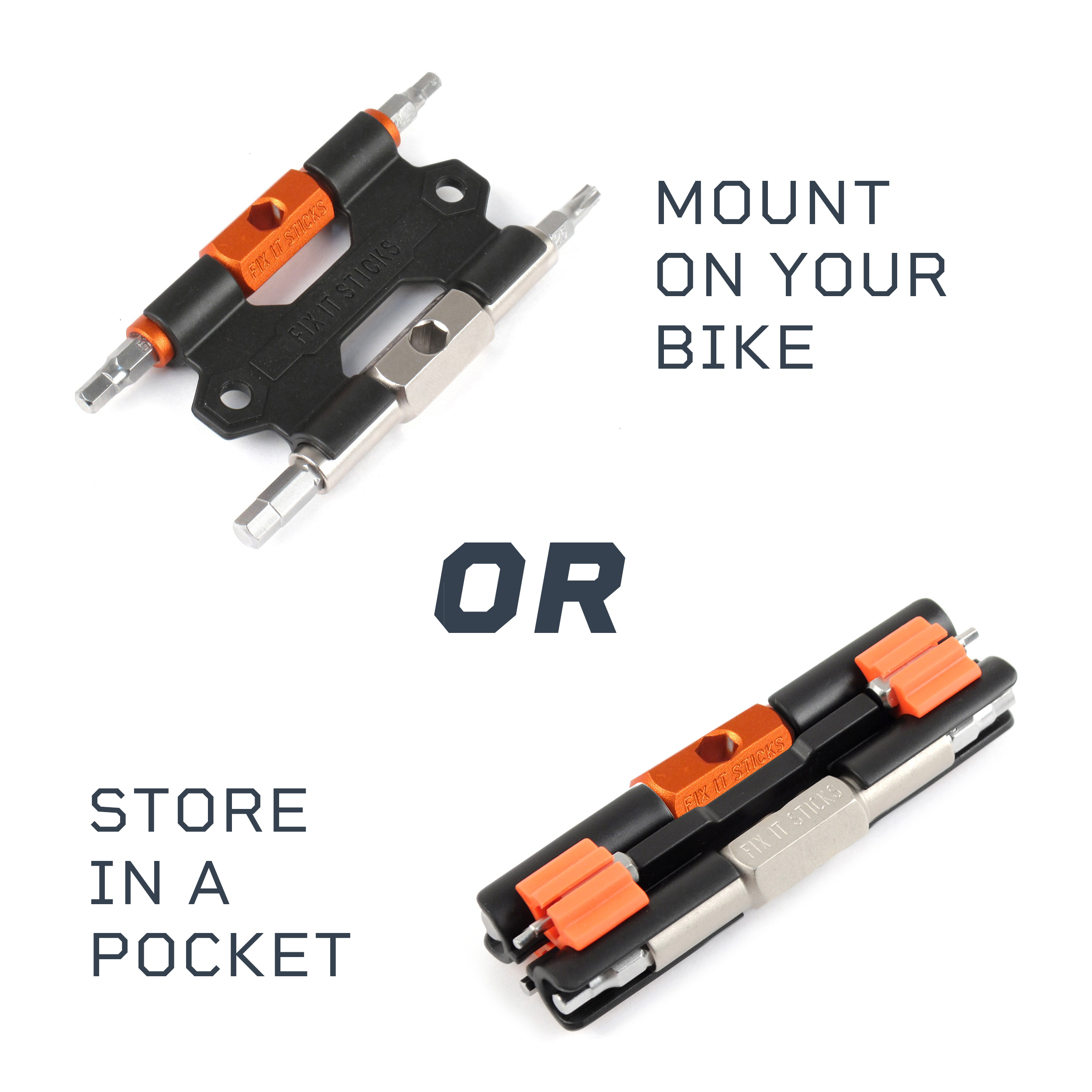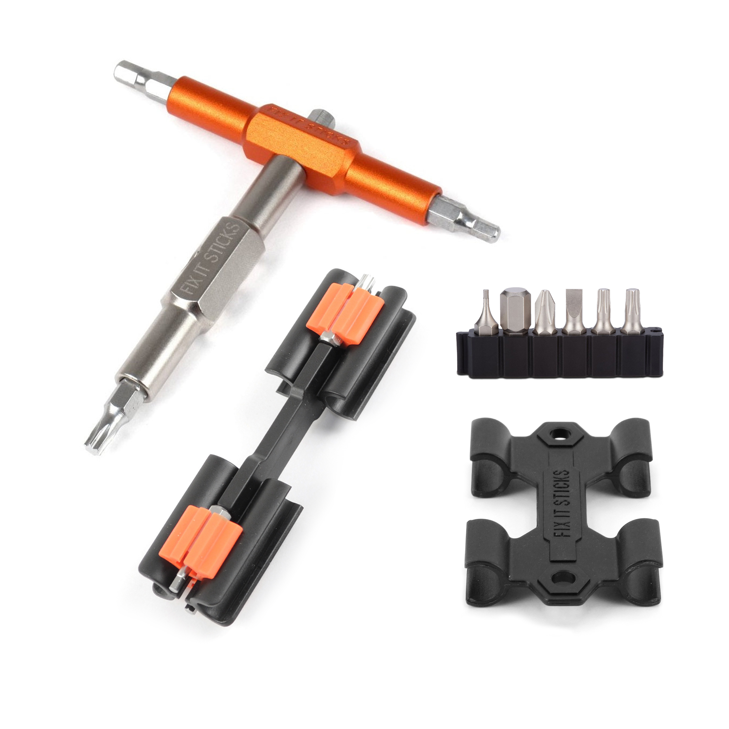 Set also includes the Fix It Stick Molded Bracket and Mounting Bracket (which mounts under any standard water bottle cage) for more options on how to ride with your tools